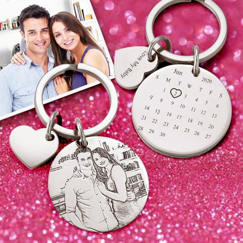 Anniversary Gifts, Custom Photo Engraved Calendar Keyring personalized keychain