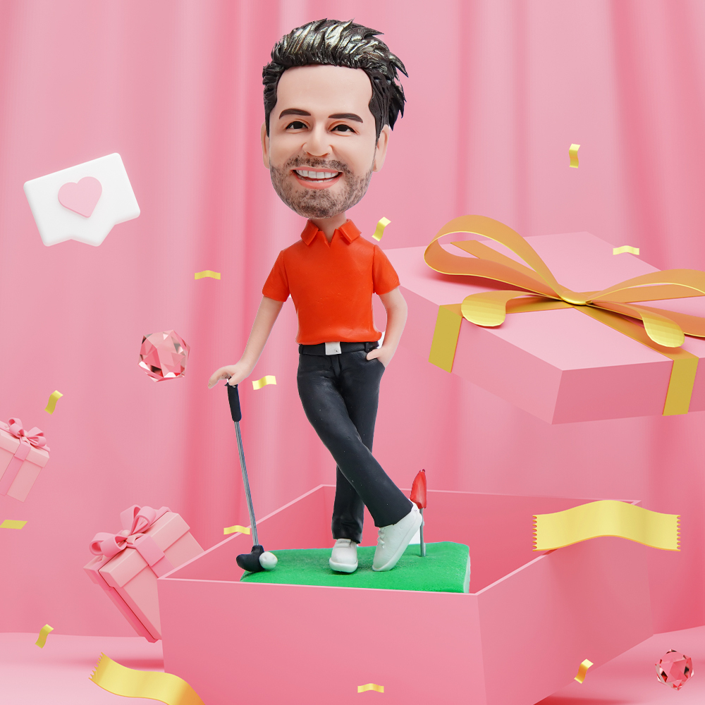 Valentine's Day For Him Custom Bobblehead Golf Course Man With Engraved Text