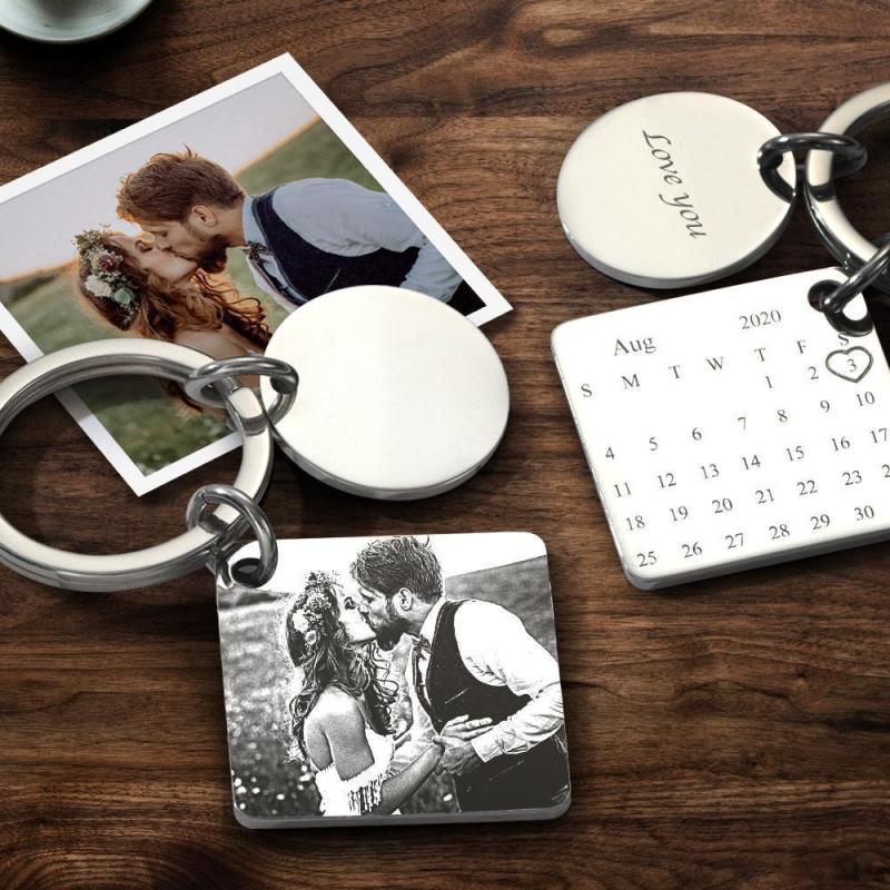 Best Gift Custom Photo Engraved Calendar Keychain Anniversary Gift for Lover