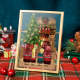 Family Friends and Pets Cartoon Plauqe with Golden Frame