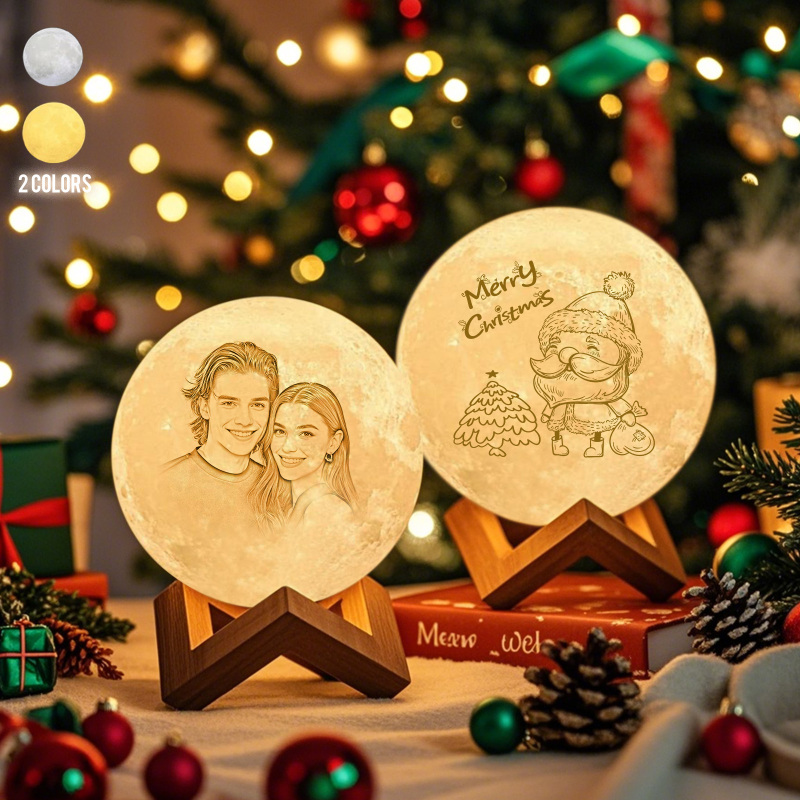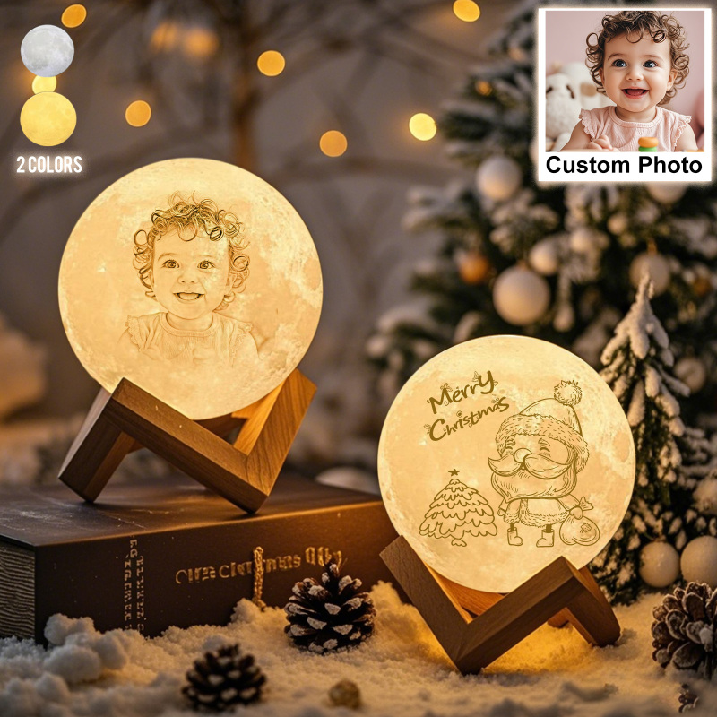 Personalized 3D Printed Photo Moon Lamp Personalized Santa pattern Lamp(10CM-15CM)