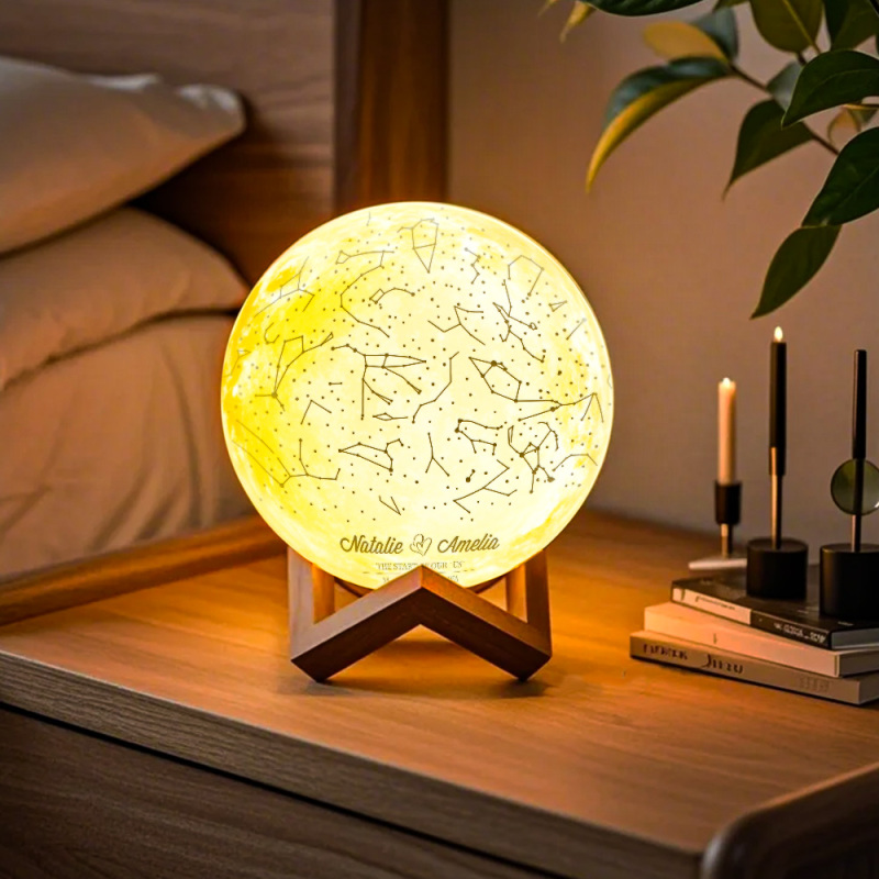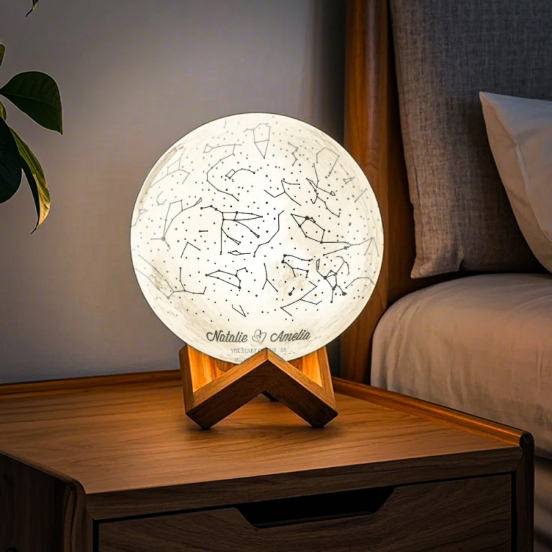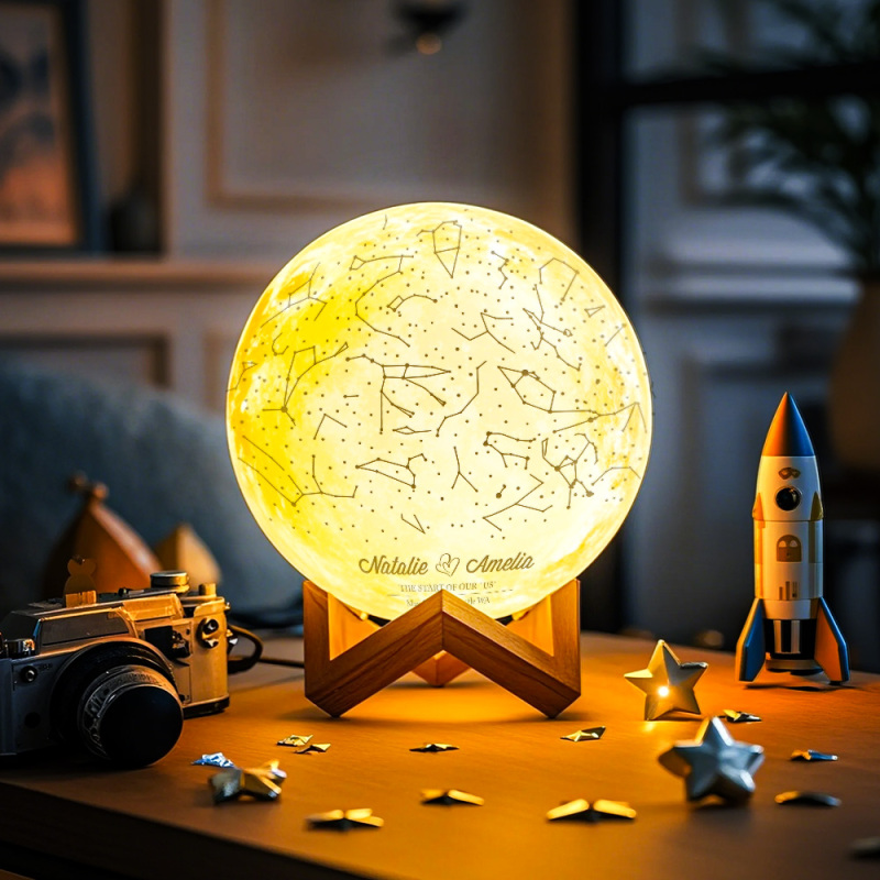 Custom Astrology Creative 3D Print and Engraved Personalized Photo Moon Lamp - Touch Two Colors