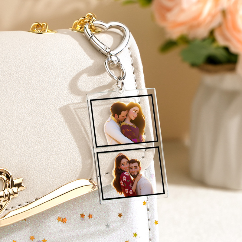 Custom Cartoon Photos Personalized Couple Photo Acrylic Keychain Birthday Anniversary Valentine's Day Gifts for Her
