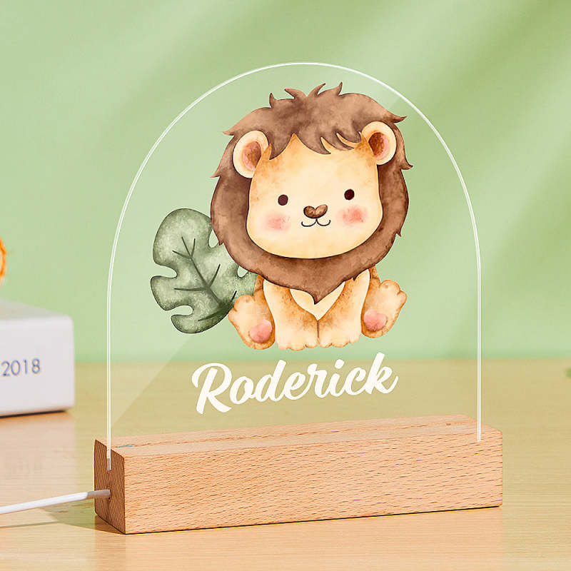 Custom Colorful Night Light with Little Lion Personalised New Born Baby Gift