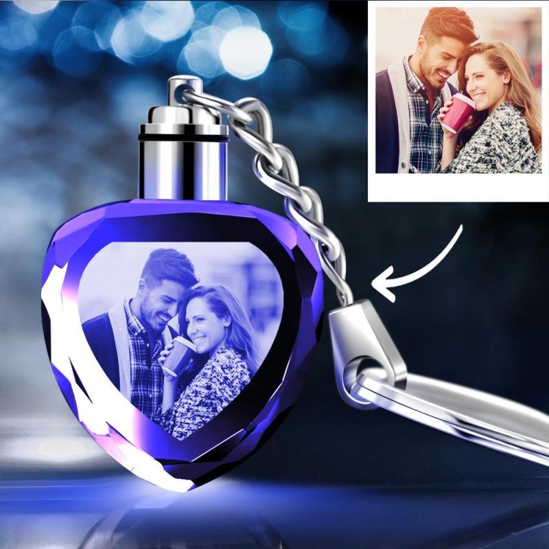 Gifts for Boyfriend Custom Crystal Keychain Heart Shape Couple Photo Keychain