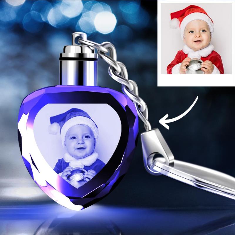 Custom Crystal Heart Shape Photo Keychain