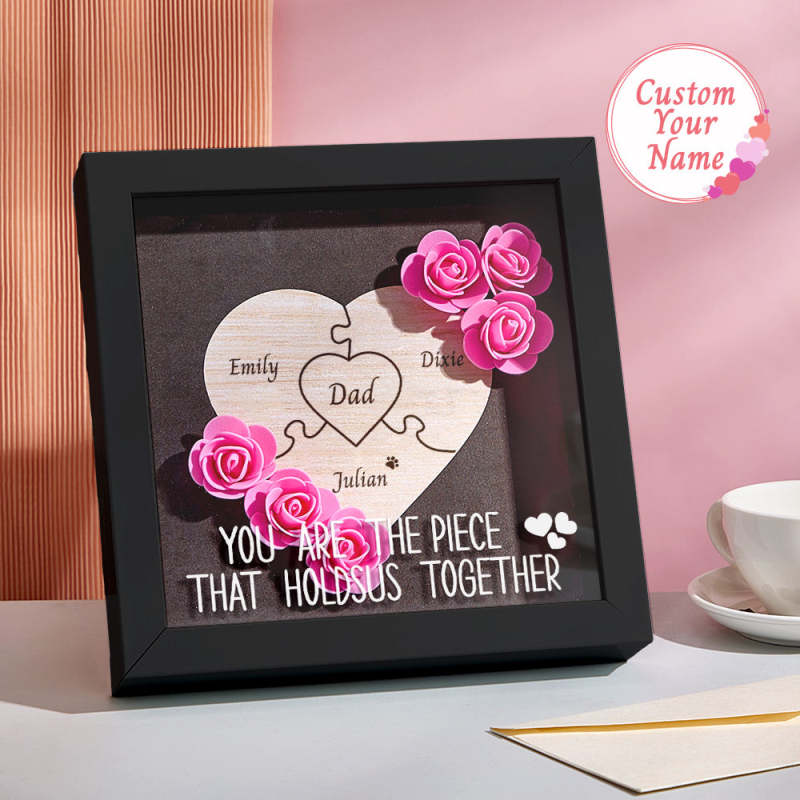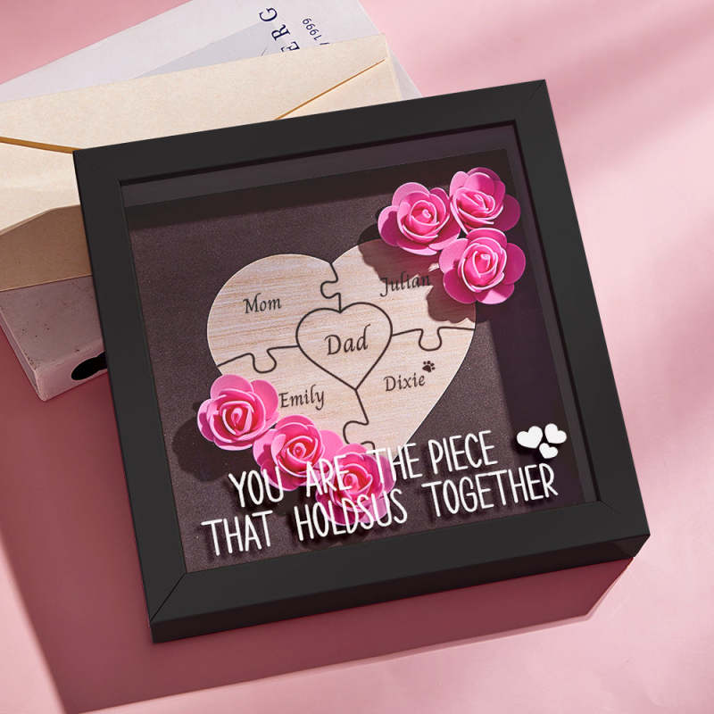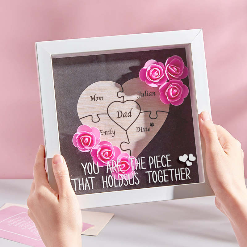 Custom Engraved Ornament Flower Shadow Box Puzzle Piece Gifts for Dad