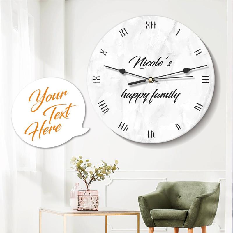 Custom Engraved Wall Clock Round White Wall Decor Your Text