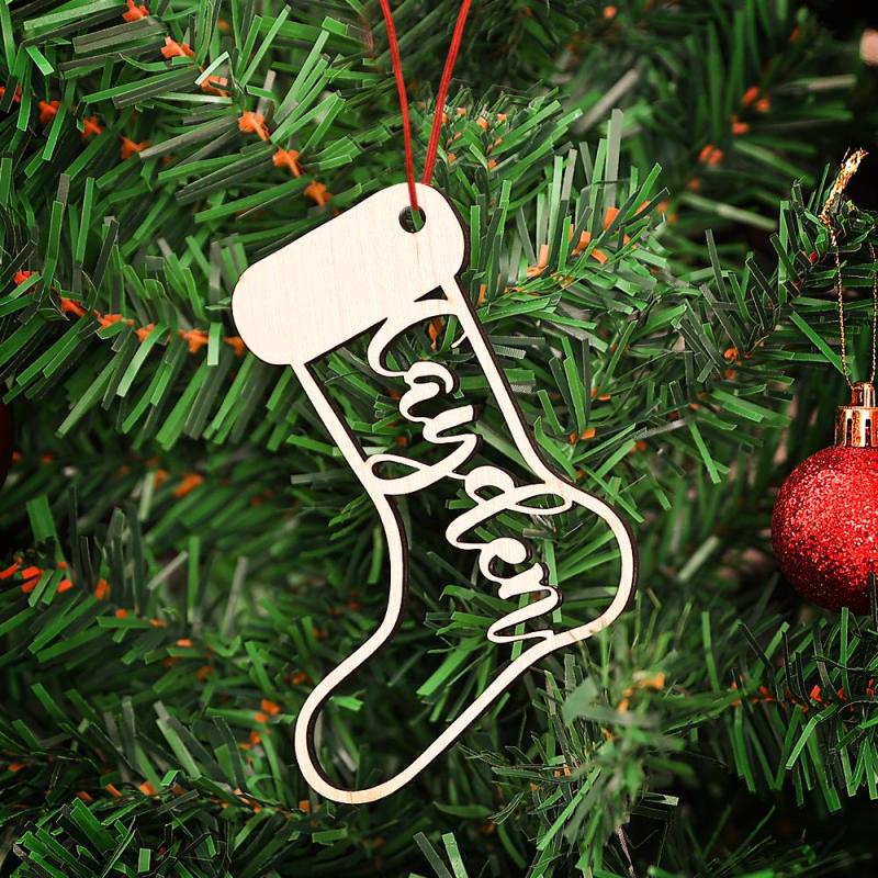 Custom Engraved Wooden Christmas Stocking Ornament Name Custom