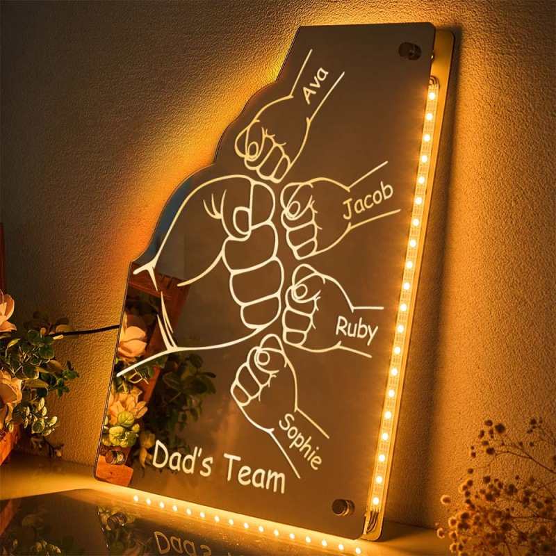 Custom Family Name Mirror Light Personalized Father's Day Fist Mirror Light