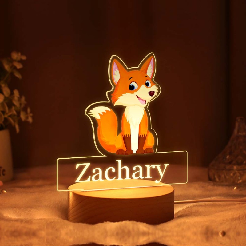 Custom Fox Night Light with Personalised Name Kids Bedroom Nursery Decor