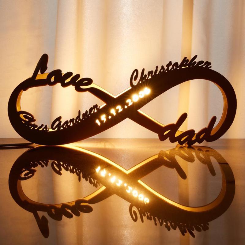 Father's Day Gifts Custom Lamp Light Up Letter Name Sign Engraved Wooden Nightlight Personalized Name Light Infinity Love Gift for Dad