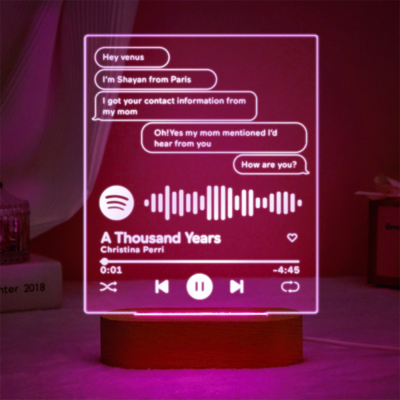Custom Message Music Plaque Lamp Scannable Spotify Code Colorful Night Light Valentine's Day Gift
