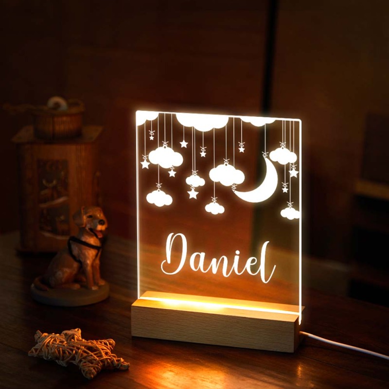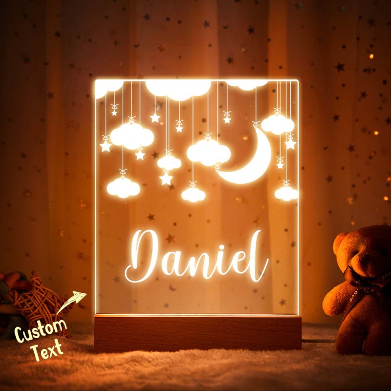 Custom Moon Cloud Night Light Kids Bedroom Decor Name Night Light