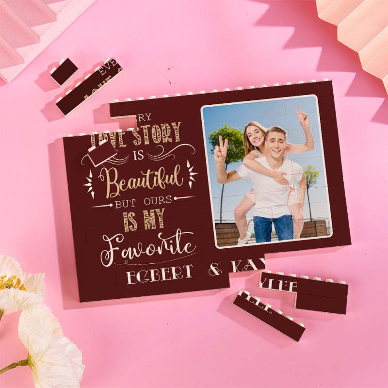 Custom Name Building Block Puzzle Horizontal Photo Brick Gift for Couple