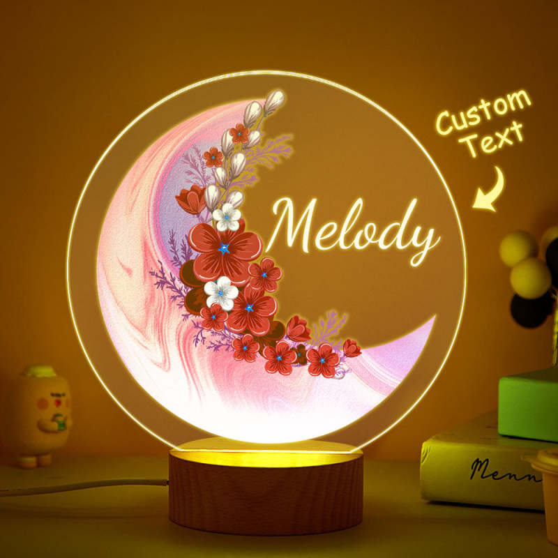 Custom Name Flower Moon Night Light Nursery Room Lamp Gift for Girl
