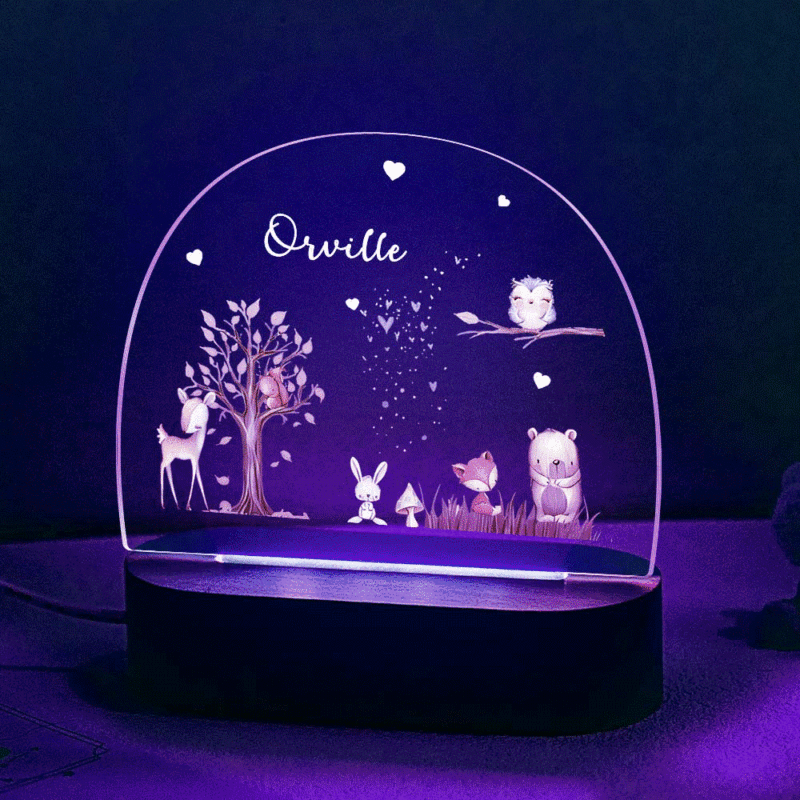 Custom Name Fox and Fawn Bedside Lamp Personalized Forest Acrylic Night Lamp