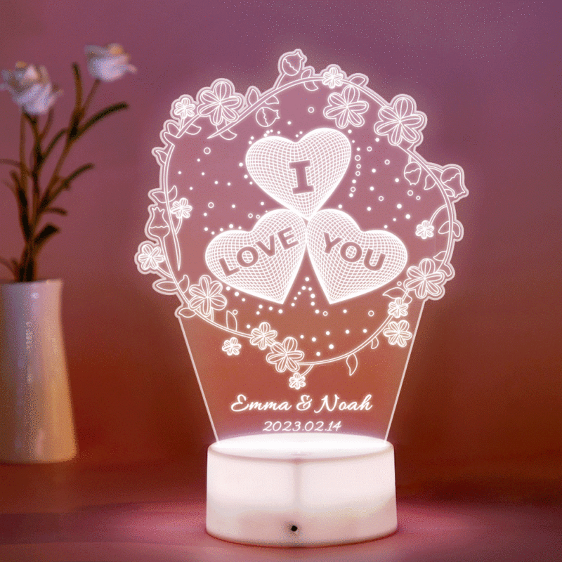 Custom Name Heart Flower Night Light Personalized I Love You For Home Decor