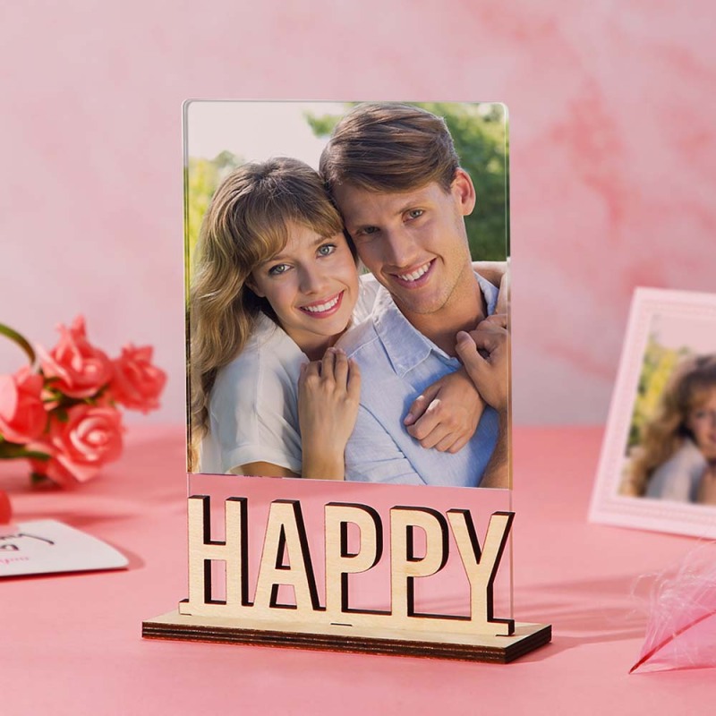 Custom Name Photo Frame with Wooden Base and Acrylic Cover