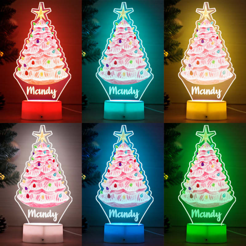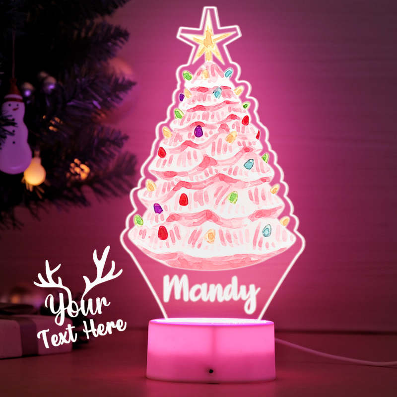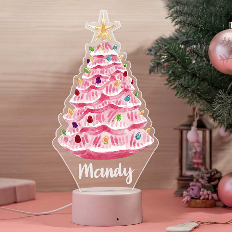 Custom Name Pink Christmas Tree with Multicolored Bulbs Lamp LED Night Light for Kids Gift