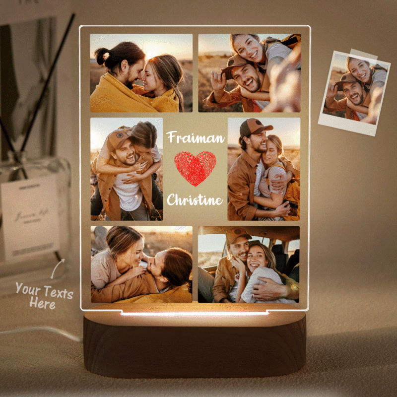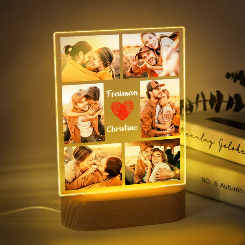 Custom Photo Collage Led Night Light Personalized Name Couple Gift Wedding Anniversary