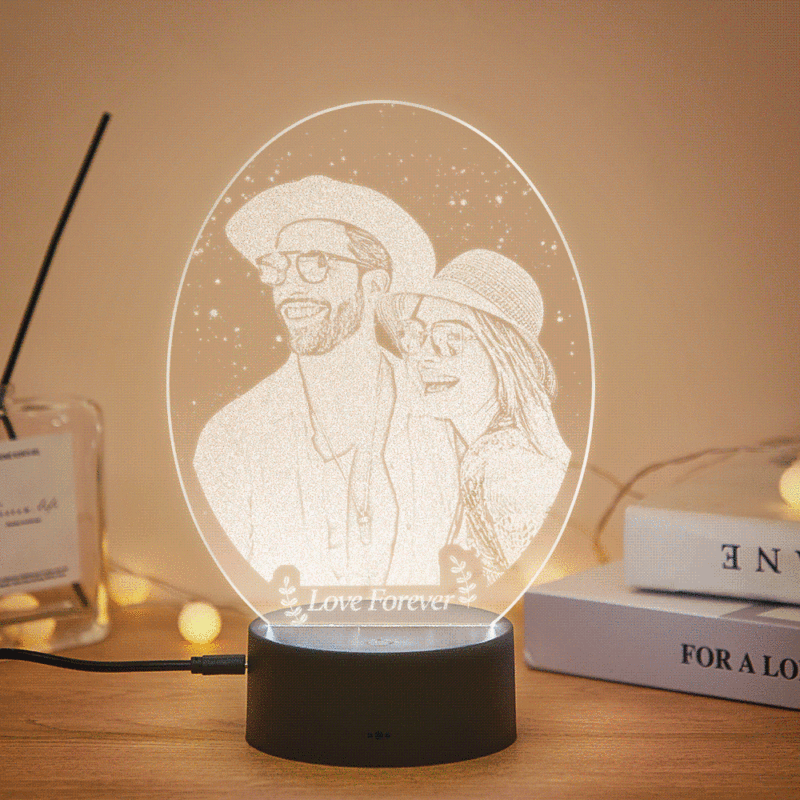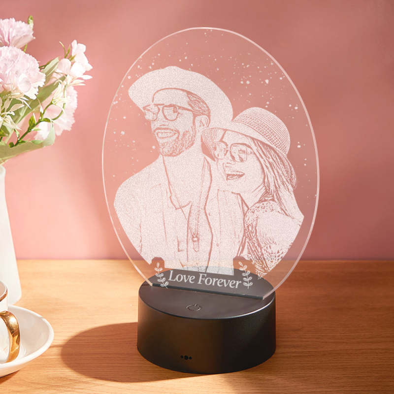 Custom Photo Engraved Nightstand Light Anniversary Lamp For Couple