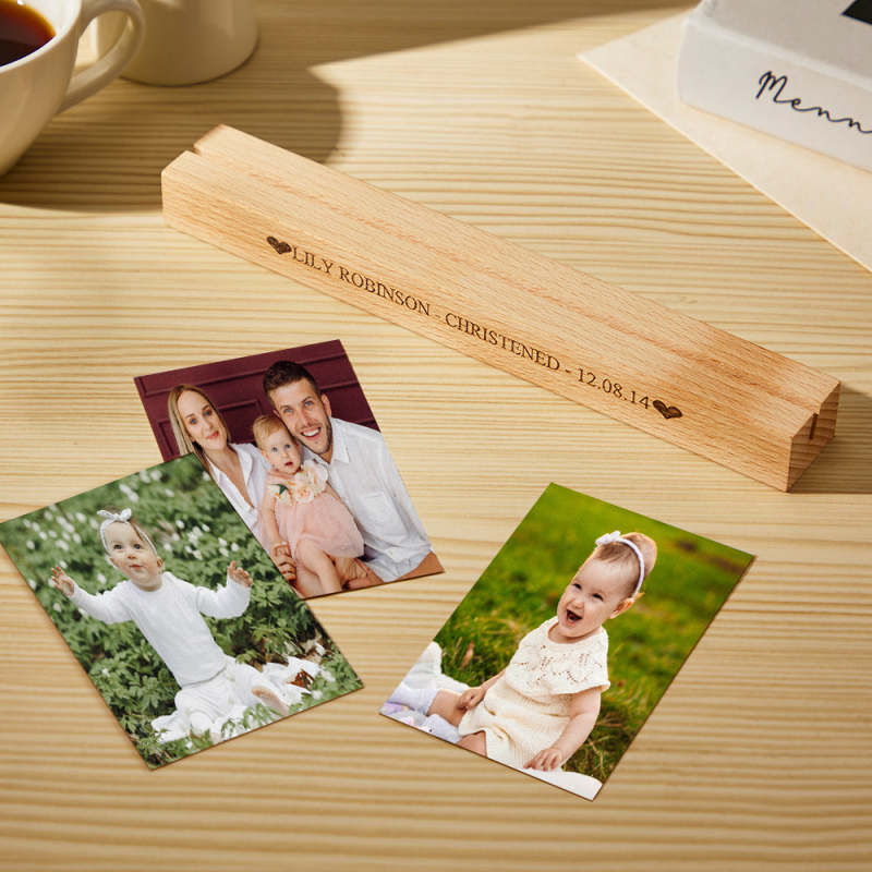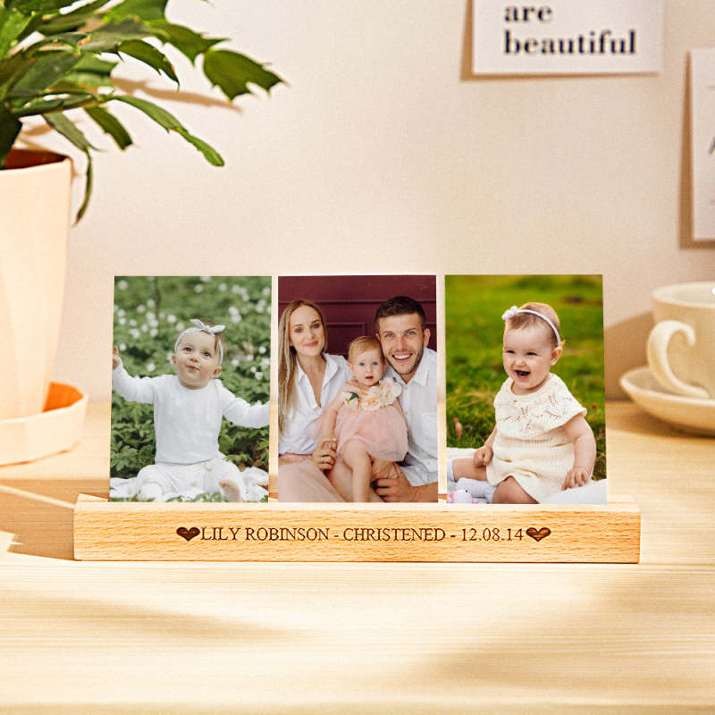 Custom Photo Engraved Ornaments Christening Heart Photo Block