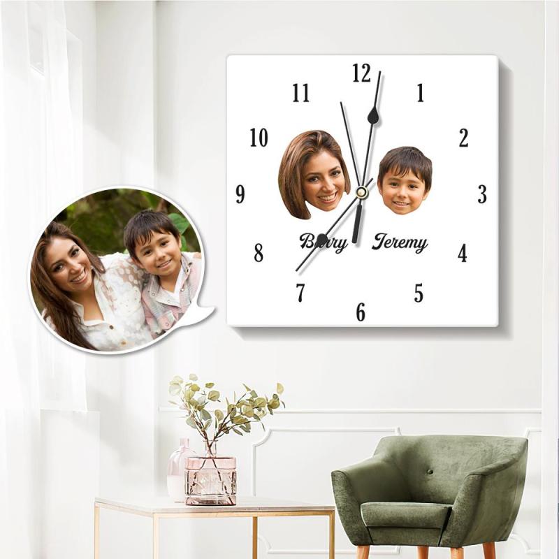 Custom Photo Engraved Wall Clock Square Gifts for Mom
