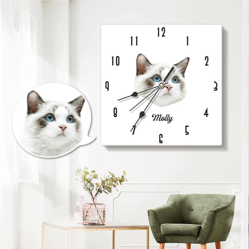 Custom Photo Engraved Wall Clock Square Lovely Cat Gifts