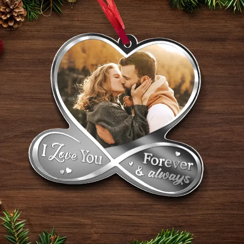 Custom Photo I Love You Forever & Always - Couple Personalized Custom Mirrored Acrylic Ornament - Christmas Gift For Husband Wife, Anniversary