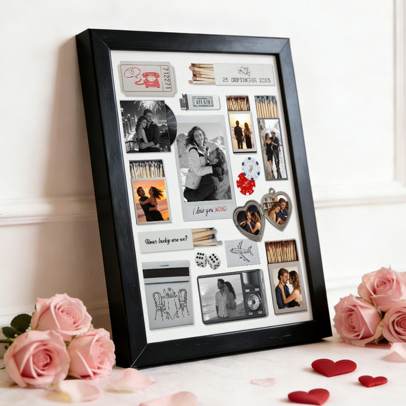Custom Photo Matchbox Wooden Frame with Your Text Matchbook Poster Print Wall Art Anniversary Gift