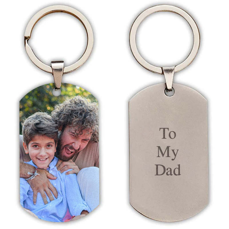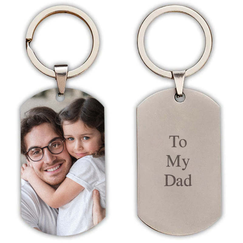 Gift For Dad Custom Gifts Photo Stainless Steel Keychain With Engraving Back