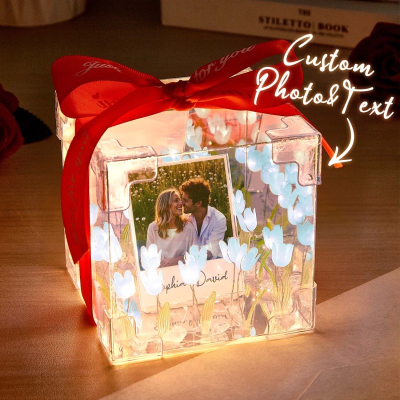 Custom Photo Tulip Flower Infinity Mirror Box Infinity Mirror Flower with Your Picture and Text DIY Kit