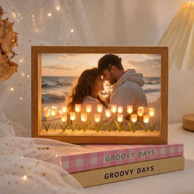 Custom Photo Tulip Night Light Frame – DIY LED Flower Lamp, Romantic Acrylic Light Box, Personalized Gift for Couple, Bedroom Decor