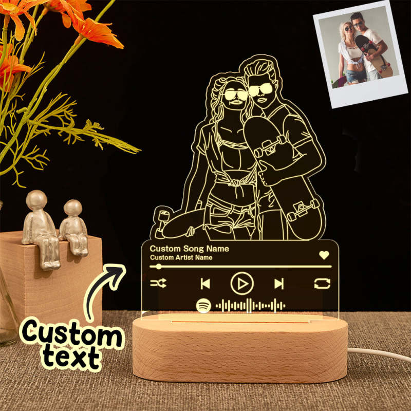 Custom Portrait Night Light Music Line Art Photo Lamp Gift for Lover