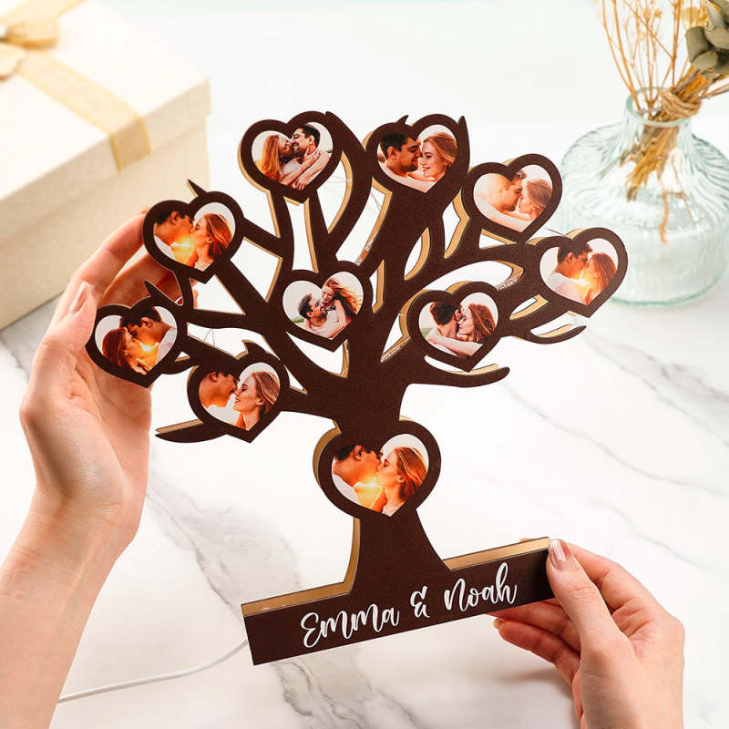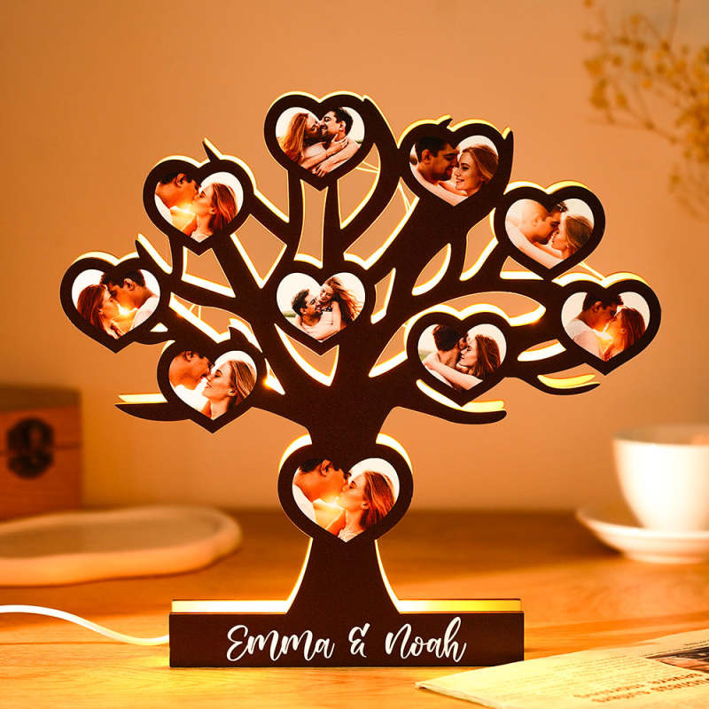 Custom Tree Wooden Photo Night Light Personalized Name Lamp Gift for Him/Her