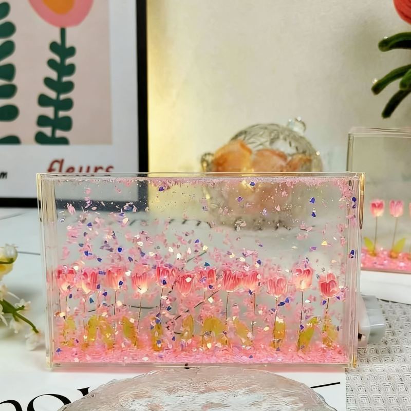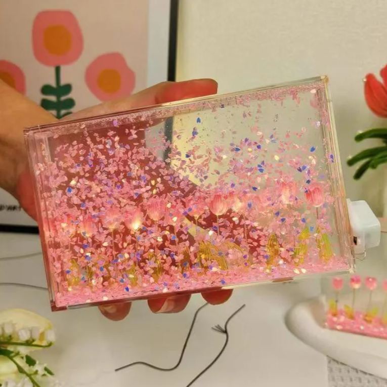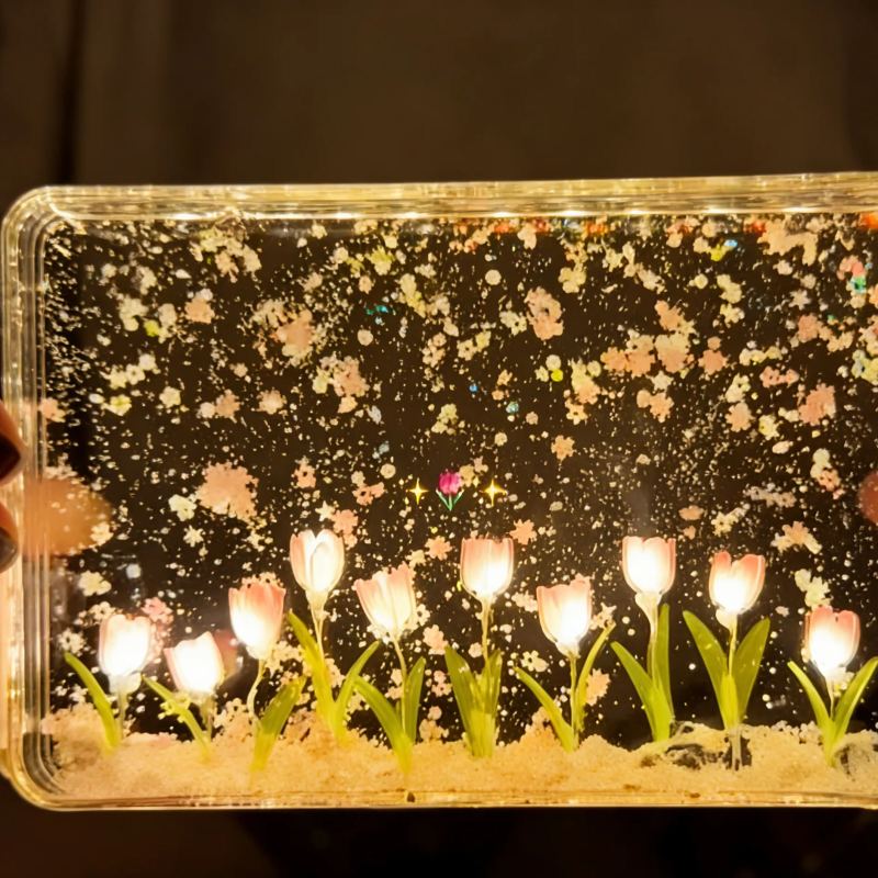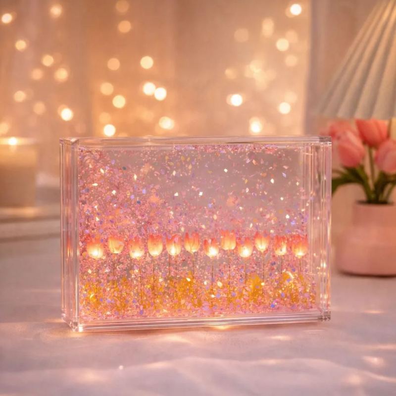 DIY Floating Petal Tulip Night Light – Romantic Acrylic Sandscape Lamp with LED Glow, Handmade Decorative Desk Light Gift for Women & Home Decor