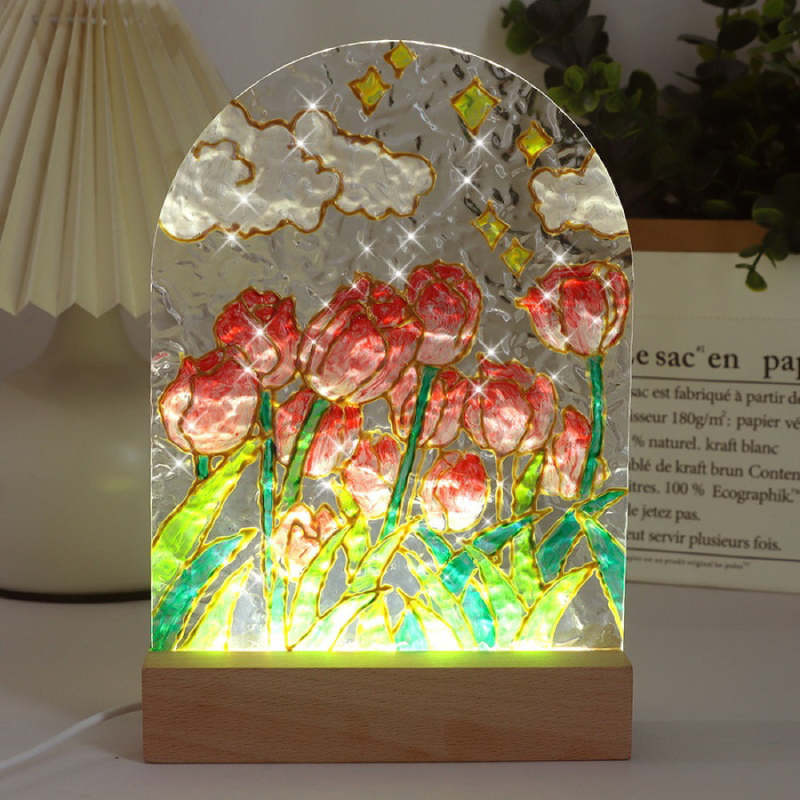 DIY Painting Night Light Set Water Wave Transparent Acrylic Drawing Board Lamp