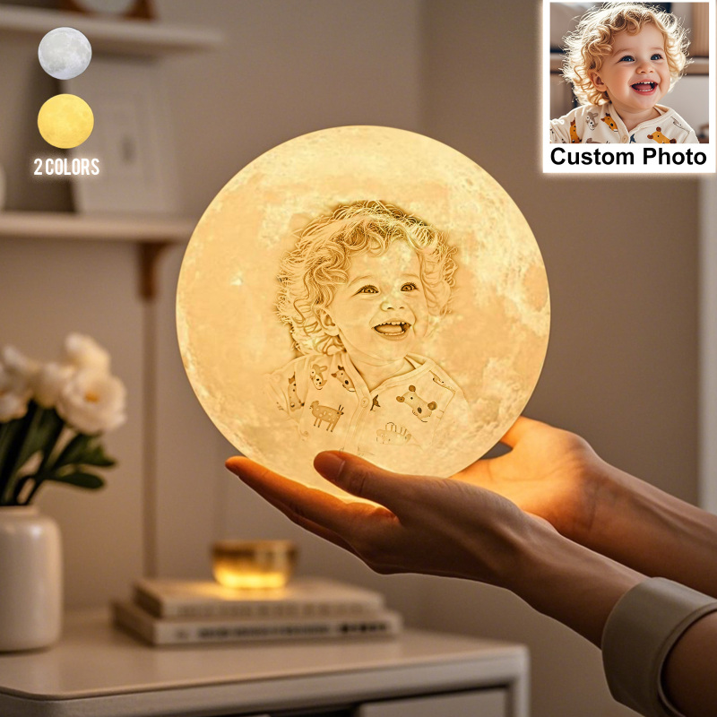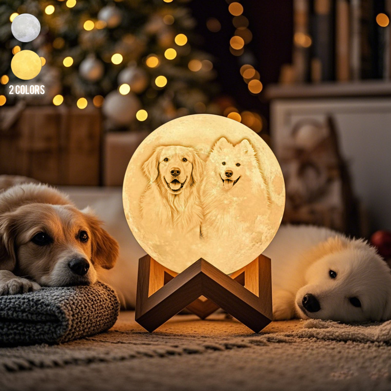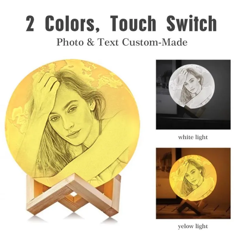 Engraved Pet Photos Lamp Two Colors Magic Lunar Customized Earth Lamp With Text, Birthday Anniversary Gift (10-15cm)