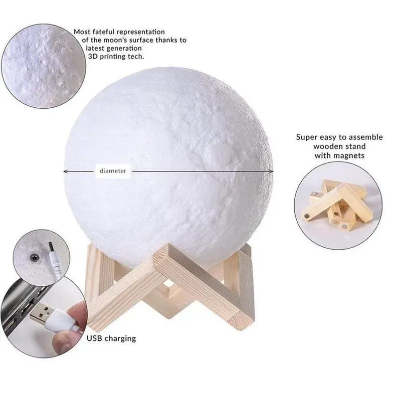 This photo doesn’t do it justice but I thought this would help any prospective buyers. Material being 3D printed send like it could be poor quality but when turned on the quality is crazy good and I love my little moon. It was a tad expensive but I do not regret this purchase! -