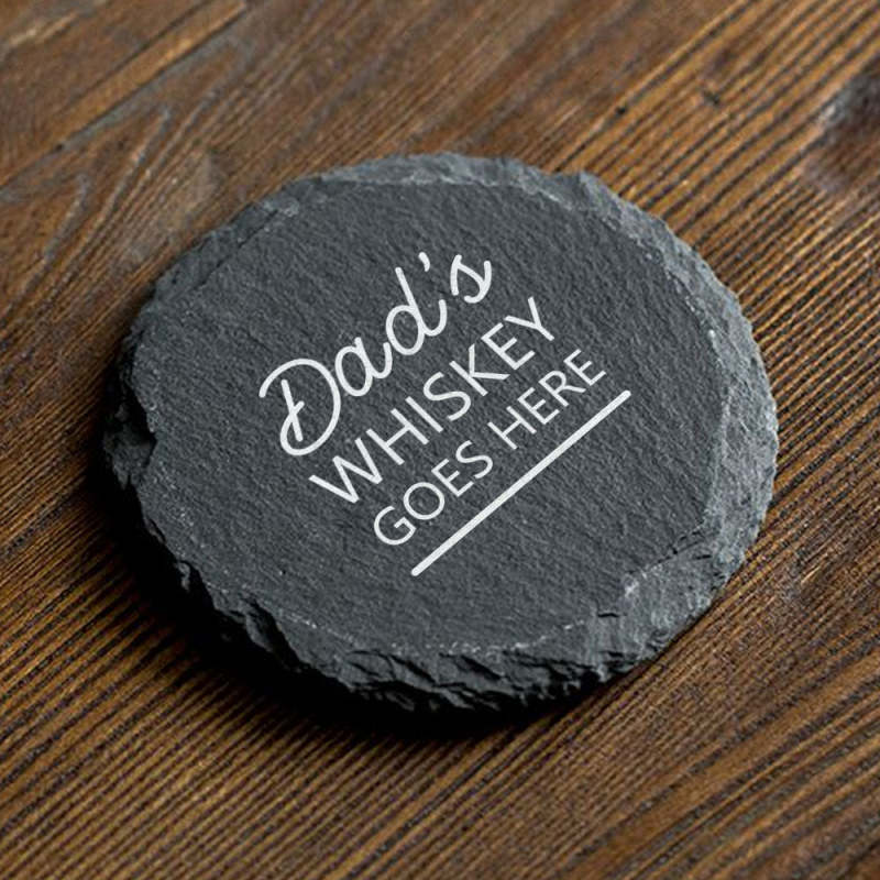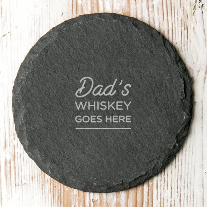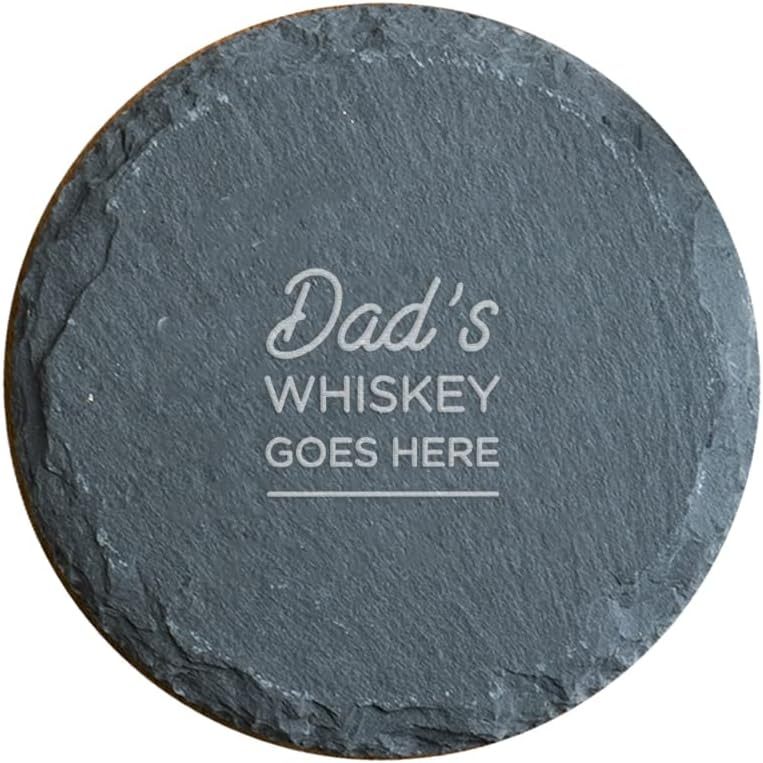 Engraved Slate Coaster for Dad Dad's Whiskey Goes Here - Funny for Dad from Daughter Son - Unique Dad Whisky Gift