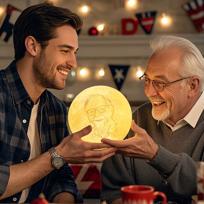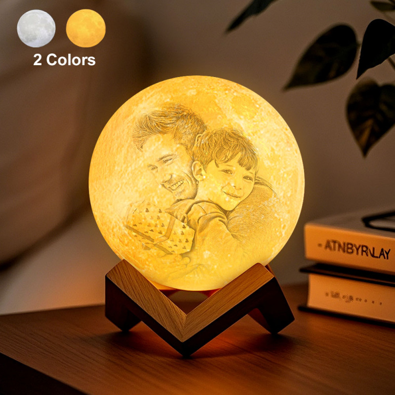 Father's Day Gift Custom Creative 3D Print and Engraved Personalized Photo Moon Lamp Gift for Dad