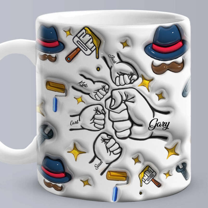 Father's Day Gifts Custom 1-6 Kids Personalized Names 3D Inflated Effect Printed Coffee Mug