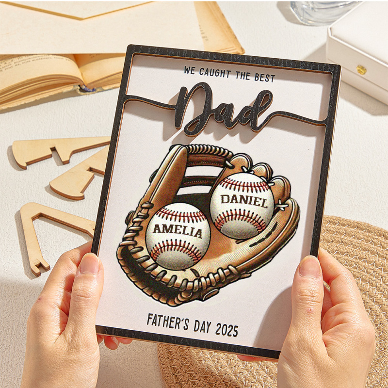 Gift for Dad Custom Engraved Wooden Baseball Plaque Decor with Stand Personalized Memorabilia