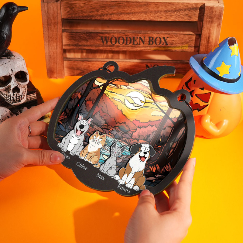 Happy Halloween With Fur Babies - Personalized Window Hanging Suncatcher Ornament
