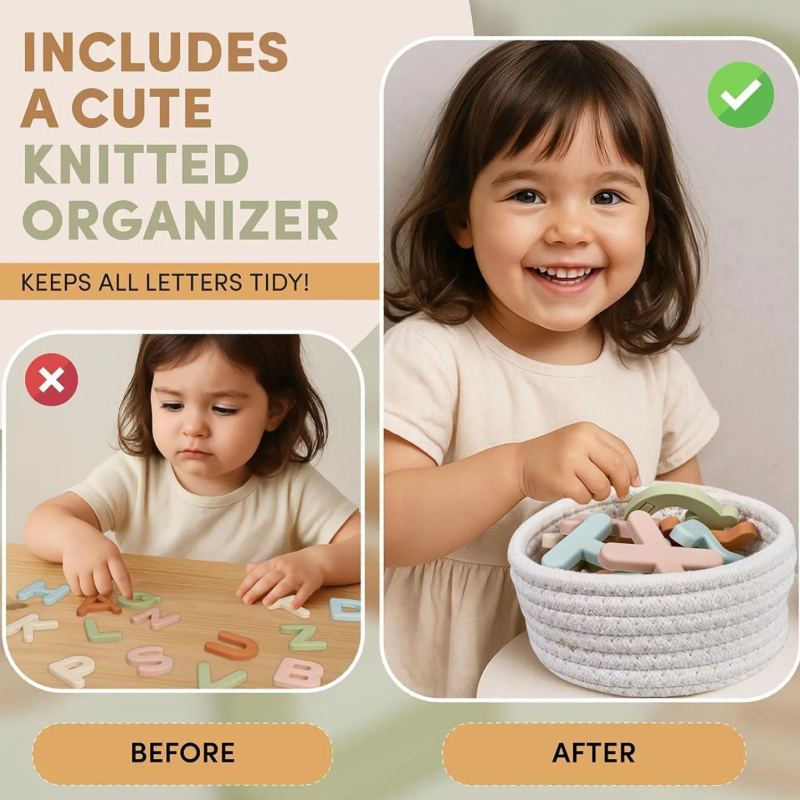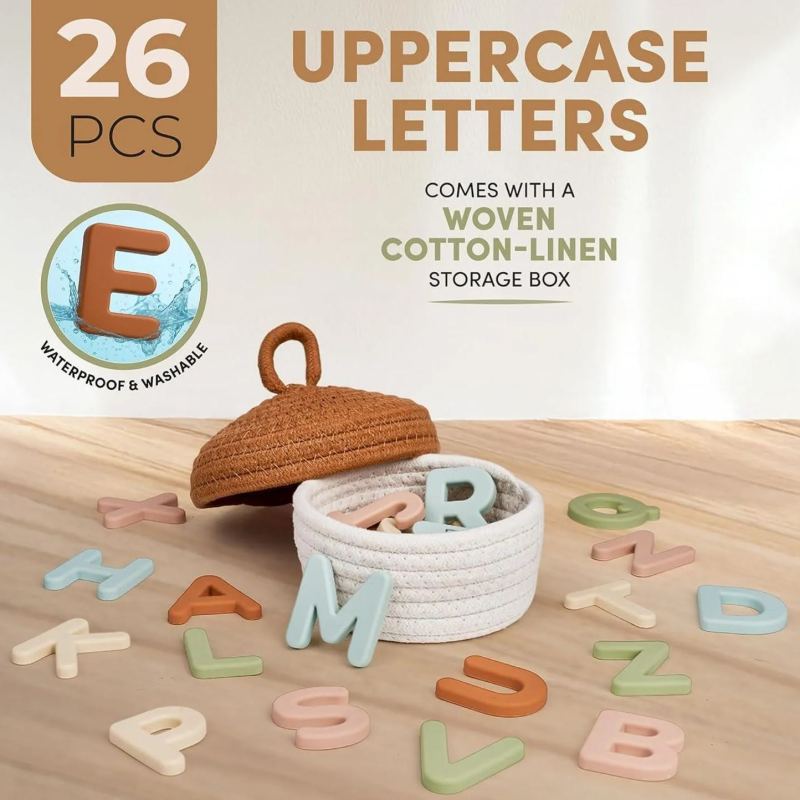 Silicone Alphabet Magnetic Letters, 26 Uppercase ABC Fridge Magnets for Kids 3+, Preschool Learning Refrigerator Toy Set, Birthday Gifts for Boys Girls (Muted Color)