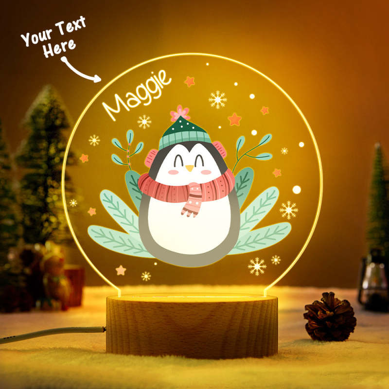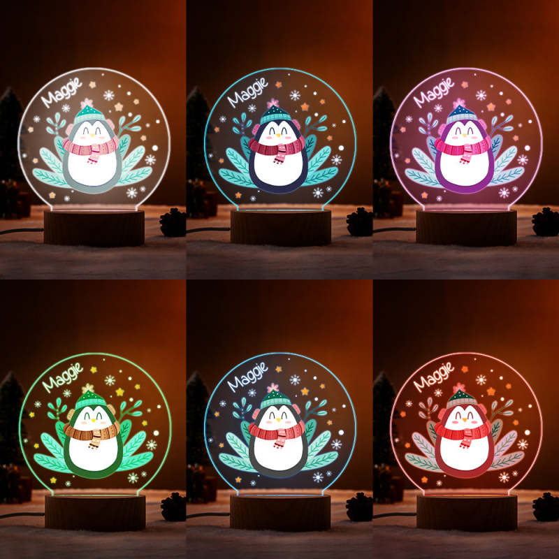 LED Night Light Christmas Gift For Kids Personalized Name Penguin Lamp Family Christmas Decoration