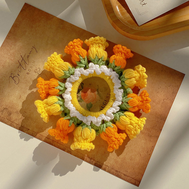 Mother's Day Gifts Hand-Woven Lily Of The Valley Wool Large Intestine Hair Ring High Elastic Ponytail Hair Ring