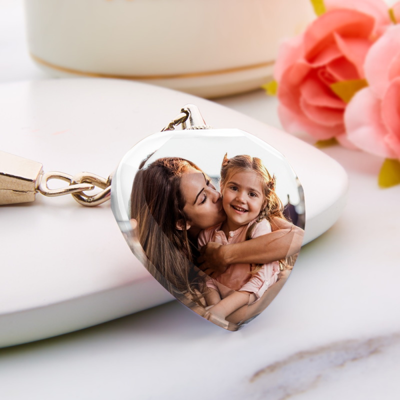 Custom Photo Keychain Personalized Crystal Heart Keyring Photo Heart Shape Keychain