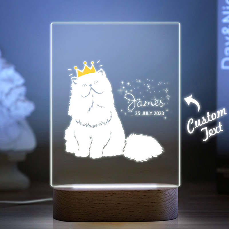 Personalised Baby Gift Nursery Decor Crowned Cat Night Light Custom Name Night Stand Lamp
